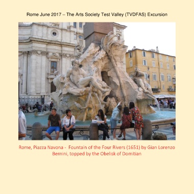 Rome June 2017 – The Arts Society Test Valley (TVDFAS) Excursion Rome, Piazza Navona - Fountain of the Four Rivers (1651) by Gian Lorenzo Bernini, topped by the Obelisk of Domitian